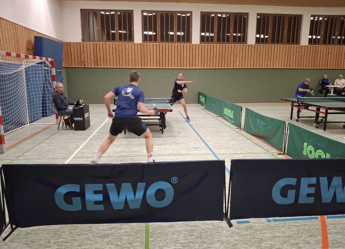 Bezirksligareif ist jetzt schon die Wichmannshäuser Fan-Kulisse, denn den 7:3-Sieg des TSV gegen den Verfolger feierten im offiziellen Spielbericht angegebene 53 Zuschauer. Für Wichmannshausen war das allerdings keine ungewöhnliche Kulisse. Eine Punkteteilung gab es zunächst in den Doppeln, wobei Wolf/Rimbach den Gästen Marquardt/Harbich 2:3 (5. Satz 9:11) unterlagen, aber Dreer/Jung gegen Jung/Schmerbach mit 3:0 das 1:1 buchten. Eine Vorentscheidung fiel dann in den folgenden vier Einzeln, in denen J. Wolf, S. Dreer, Ph. Jung und Ch. Rimbach mit Siegen das 5:1 buchten, Rimbach aber erst im fünften Satz (11:8) gegen L. Harbich. Den zweiten Gästepunkt schaffte Nico Marquardt, der im Spitzenspiel Jannik Wolf mit 3:1 (11:9, 12:10, 3:11, 11:4) zum 5:2 besiegte. Aber das beeindruckte die Gastgeber wenig, die durch die Siege von Dreer und Rimbach die zwei Punkte zum Sieg eroberten, Harbich den dritten Zähler für die Gäste erkämpfte.
