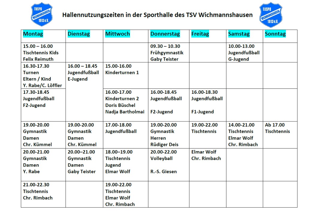 In der Uwe-Seeler-Halle finden der Trainings- und Spielbetrieb unserer Tischtennismannschaften sowie der Übungsbetrieb der Turn- und Gymnastikgruppen sowie der Volleyballgruppe des TSV Wichmannshausen statt.